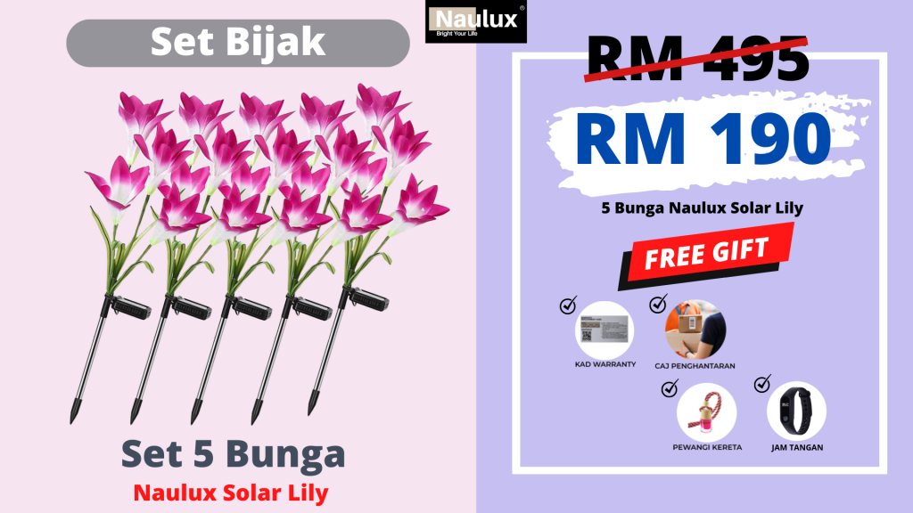 CUCUK CUCUK JE LAMPU SOLAR BUNGA LILY NAULUX NI, BERSERI SATU HALAMAN RUMAH !